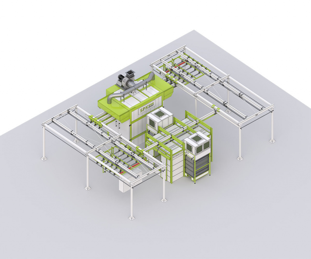 Комплекс оборудования для окраски и сушки изделий с подвесным конвейером SPK-12.11.4 состоит из:- Подвесной транспортной системы (плоско-параллельный конвейер с ручным перемещением; завеска на траверсу и снятие изделий производится вручную операторами либо с помощью кран-балки Заказчика; распределенная нагрузка на одну траверсу — до 100 кг